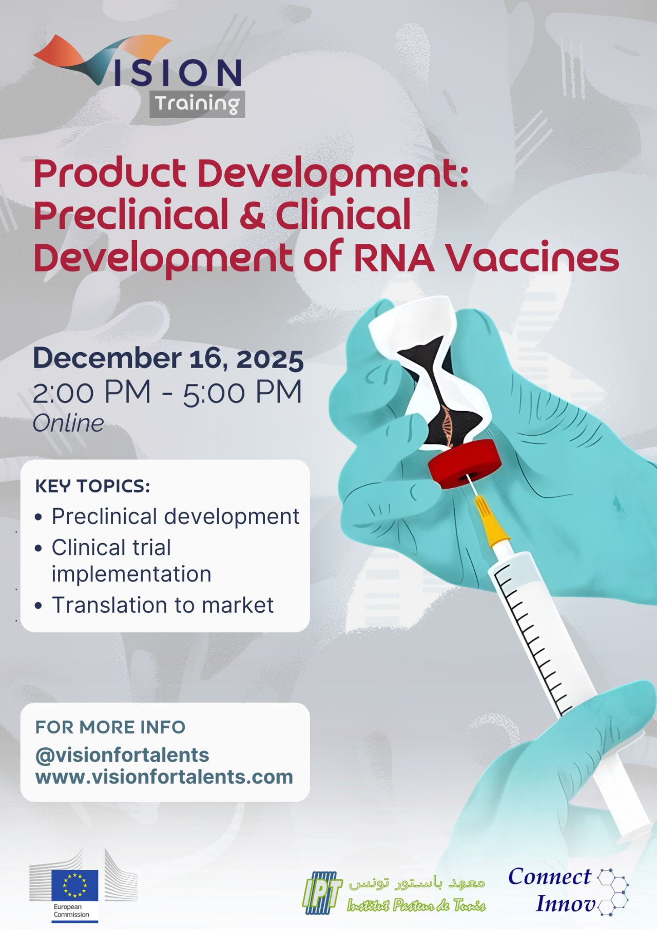 As part of the VISION Project, we are pleased to announce an online training, organized by Connect'Innov, dedicated to exploring the full development pathway of RNA vaccines.