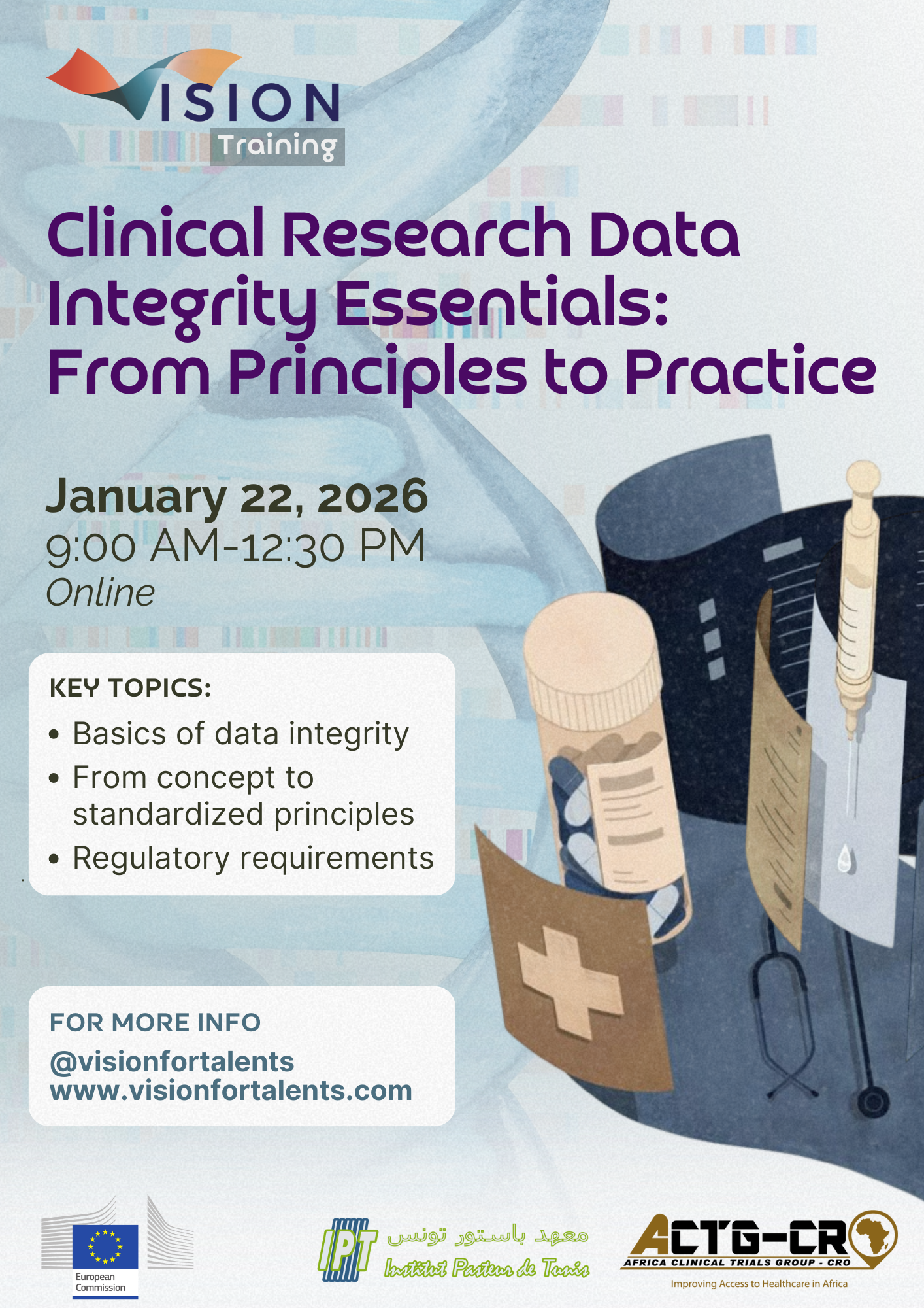 As part of the VISION Project, we are pleased to invite you to an online workshop focused on the fundamental principles of data integrity in clinical research.